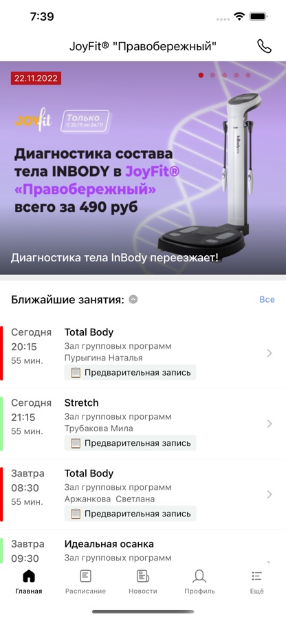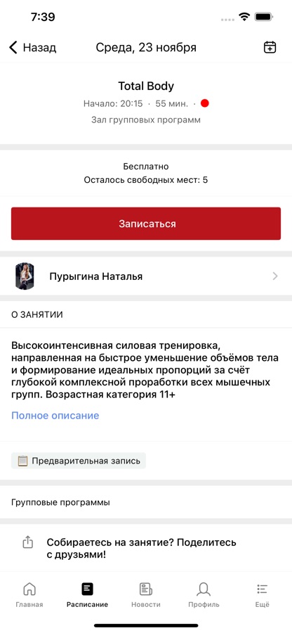 • быструю запись на групповые занятия