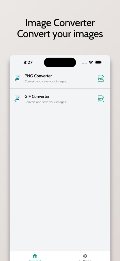 This app will allow you to convert your jpg images to png format easily. Convert your images to png, gif extension with a simple and fast way. You can select your desired images from gallery camera roll and convert them to png image as well as also in gif format. You can save them with the original resolution but with a smaller size depend on the photo pixels.
