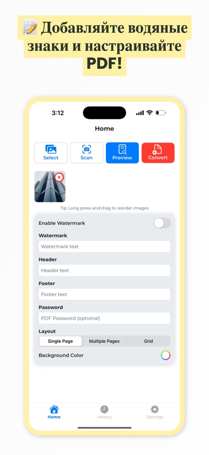 • Настраиваемые макеты: Выбирайте между одной страницей, несколькими страницами или сеткой при конвертации.