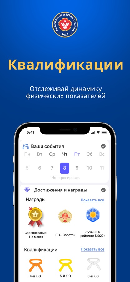 Приложение для доступа к личному кабинету спортсмена и родителя спортсмена Федерации дзюдо России.