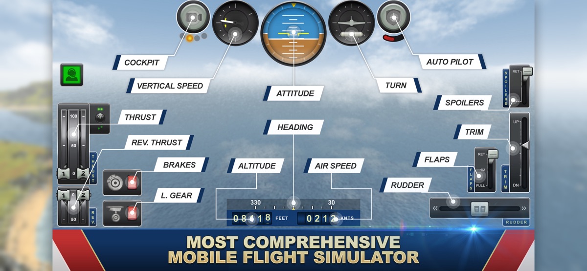 The Game also features Day/Night cycles, Dynamic Weather, Free fly mode, and a Cockpit view. Unlike most flight simulation games on mobile, Jumbo Jet Flight Simulator offers a comprehensive list of control systems, instruments and warning systems.
