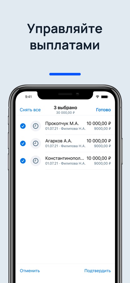 ∙ Подтверждение выплат, созданных вашими сотрудниками.