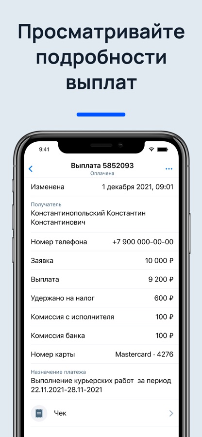 ∙ Создавайте выплаты моментально вашим клиентам и исполнителям.
