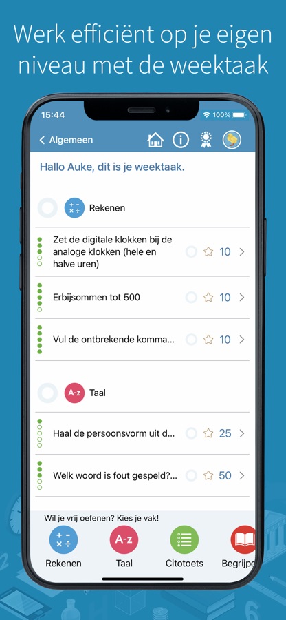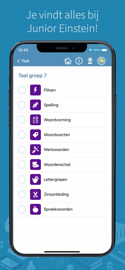 Met deze app loggen kinderen in met hun Junior Einstein account om toegang te krijgen tot hun eigen leeromgeving. Weektaken die door ouders of leerkrachten zijn klaargezet, staan meteen in beeld. Bovendien kunnen kinderen vrij oefenen en hebben ze daarvoor toegang tot alle oefeningen, voor alle vakken en alle leeftijden.