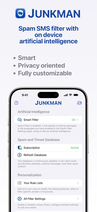 Скачайте приложение Junkman: AI Spam SMS Blocker для iOS бесплатно - последняя версия (14.7) уже доступна для установки на ваш iPhone или iPad.