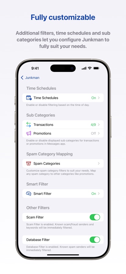 Junkman is the most powerful SMS filtering app for iOS. It can classify incoming messages as normal, junk, transaction or promotion. It will not classify old messages. It works completely locally on your device without the need for any network connectivity. It is written to filter all kinds of unwanted text messages, including betting, political, scam messages and company advertisements.