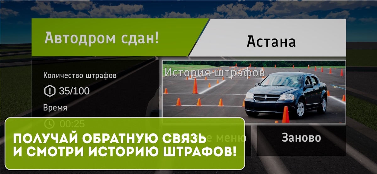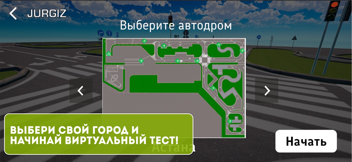 Наш симулятор полностью повторяет автодромы, на которых сдаются реальные тесты! Почувствуйте атмосферу настоящего автодром в Казахстане при сдаче практического теста. Здесь вы сможете пройти практические испытания, а также изучить особенности автодромов в разных городах.