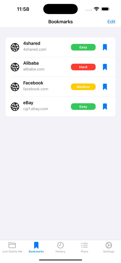 Difficulty Ratings: See at a glance how easy or difficult each service is to delete