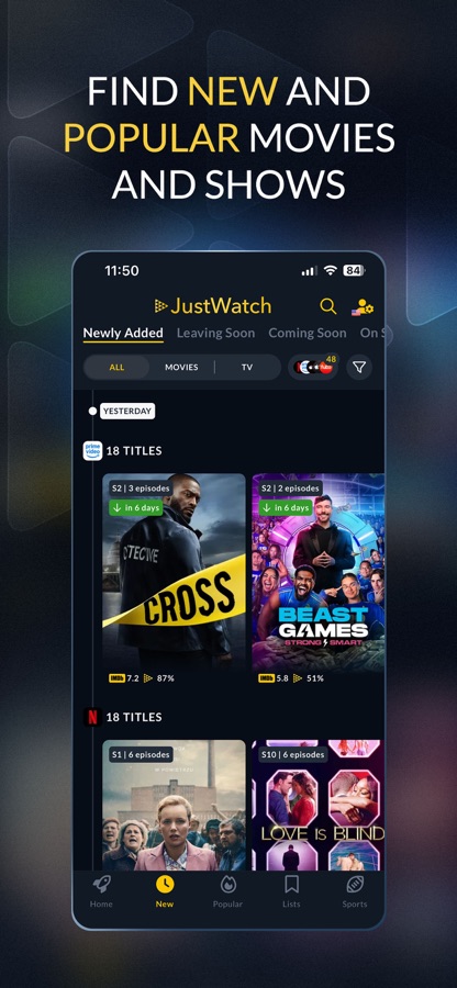 — Watchlist: add any movie or TV show to your list and get updated when it’s added to your streaming services.
