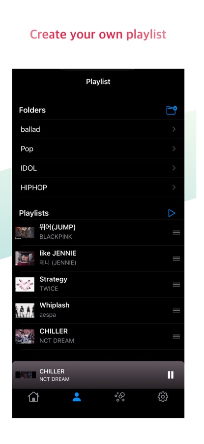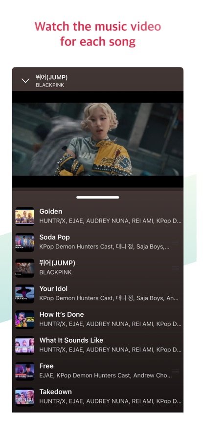 K-popTube lets you list up of them featured and new songs list and stream or organize play list directly from Video