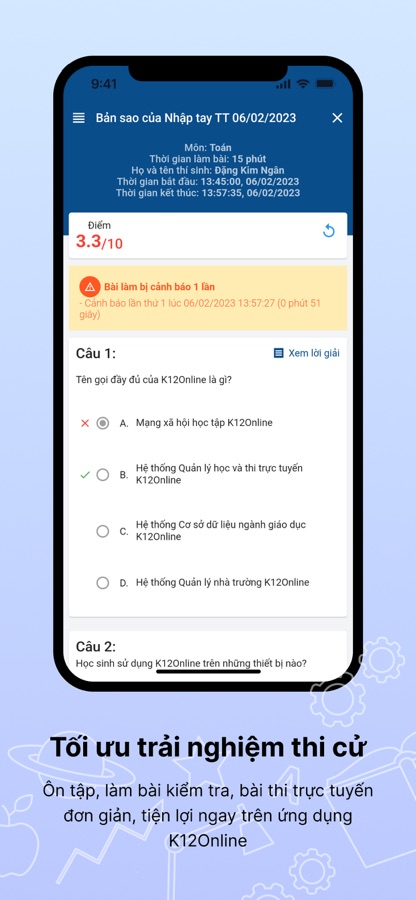 Học sinh có thể tự học, làm bài tập, làm bài kiểm tra, tham gia các lớp học trực tuyến, thảo luận trực tuyến… và khám phá nhiều tiện ích khác ngay trên ứng dụng K12Online.