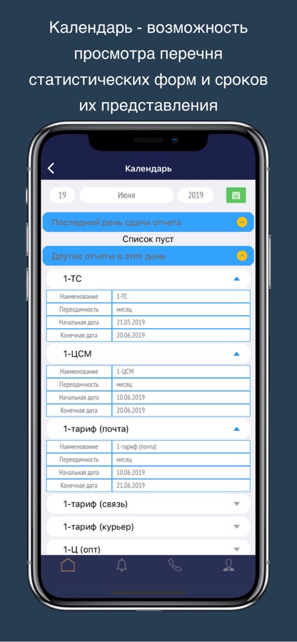 Приложение позволяет просматривать информацию о статистических формах, необходимых к представлению в органы статистики, просматривать историю сдачи статистической отчетности, проверять задолженность, дает возможность получать персональные уведомления о наступлении и о заканчивающихся сроках сдачи отчетности.