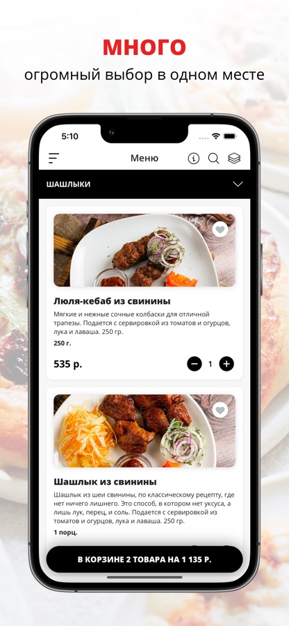 Скачивайте наше приложение, оформляйте заказ и наслаждайтесь любимой едой, где бы Вы ни были! Приятного аппетита!