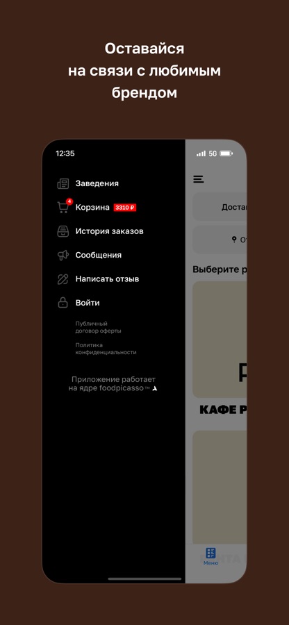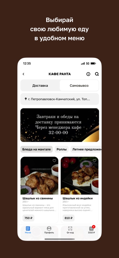 В приложении вы можете просматривать актуальное меню, выбирать блюда и оформлять заказ прямо со смартфона — быстро и удобно.