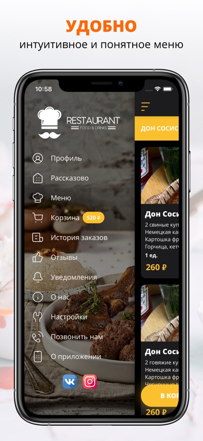 посмотреть меню и совершить онлайн-заказ,