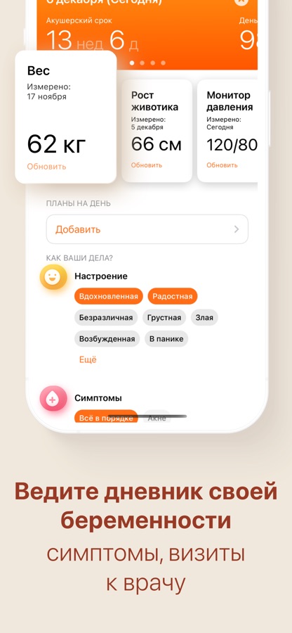 Пусть ваша беременность подарит вам множество приятных моментов! А наше приложение возьмет все заботы на себя.