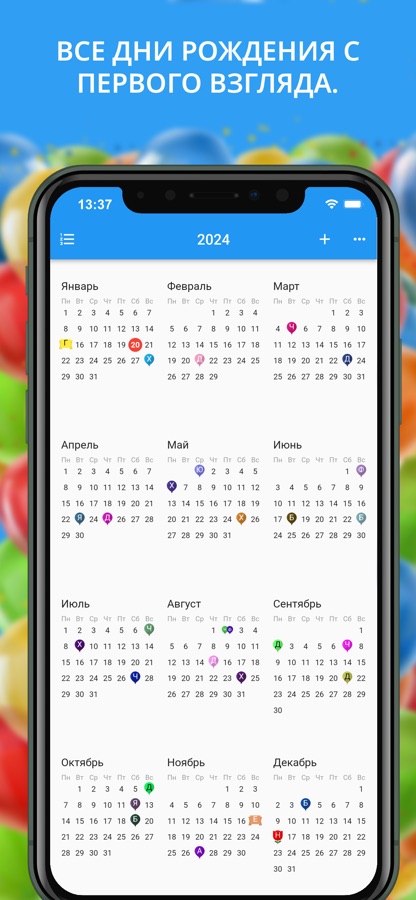 Организует все ваши дни рождения. Видите все сразу и получаете напоминание, когда захотите!