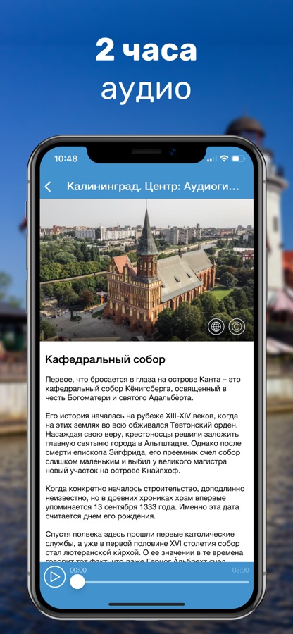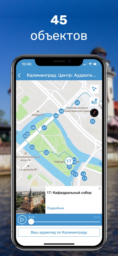 Аудиогид «Калининград Путеводитель» – это удобная аудио экскурсия по историческому центру Калининграда, которая поможет Вам узнать самое главное о городе, значительно сэкономив на услугах живых гидов.