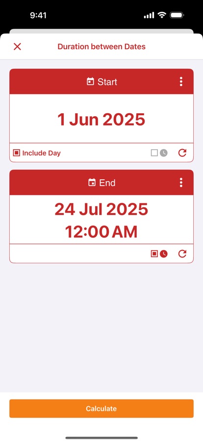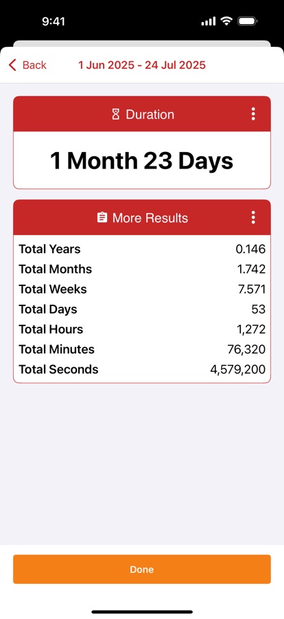 • Рассчитывает продолжительность между двумя датами. (с дополнительным режимом времени)