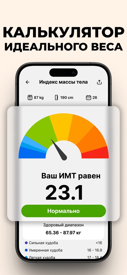 Это идеальное решение рассчитывает ваш ИМТ (Индекс Массы Тела) с использованием данных о вашем весе, росте, возрасте и поле. Поддержка как метрических, так и империальных единиц упрощает понимание вашего веса. Используя классификацию ИМТ Всемирной Организации Здравоохранения (ВОЗ), вы можете узнать, имеете ли вы недостаточный вес, нормальный вес, избыточный вес или ожирение. Автоматически рассчитывайте ваш ИМТ и принимайте меры для достижения или поддержания вашего идеального веса уже сегодня.