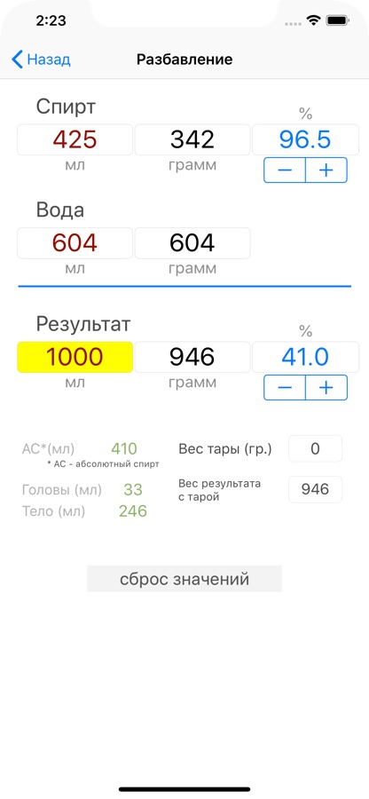 Калькулятор Спирта +