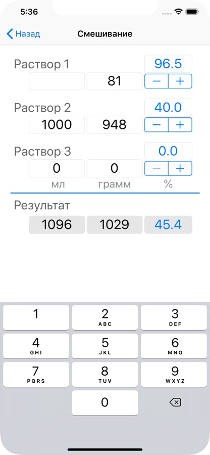 + расчет смешивания двух/трех растворов разной спиртуозности.