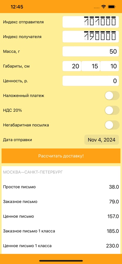 Кроме того, приложение рассчитывает стоимость наложенного платежа при получении (включая комиссию).
