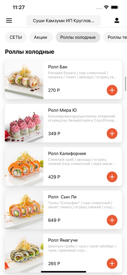 Приложение для заказа еды из ресторана Kam-zu-mi