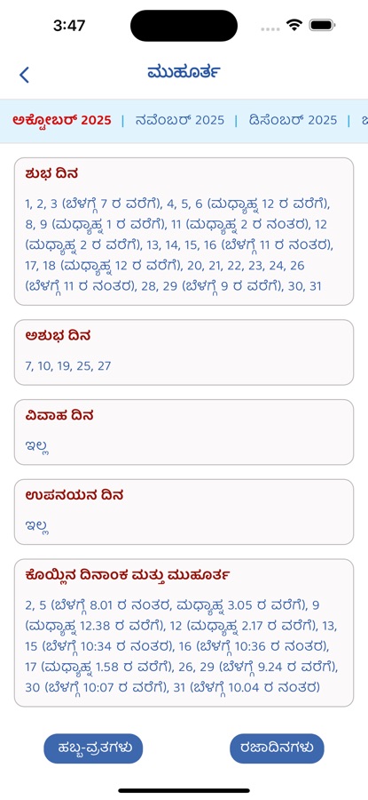 * Muhurtas – Find auspicious dates for marriage, upanayan, and more