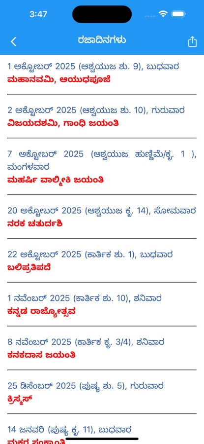 * Share Easily – Forward any article, festival info, or tithi with one tap