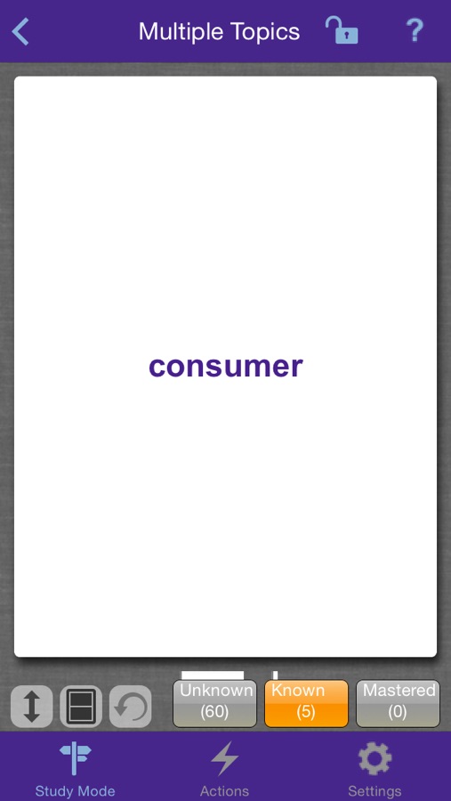 — Flashcard Boxes mode lets you file cards in “Unknown”, “Known” or Mastered” boxes so you can target weak areas