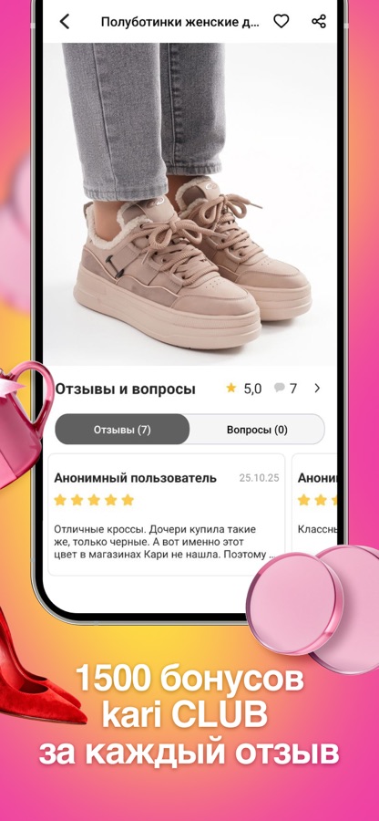 Скачайте приложение kari: обувь и аксессуары для iOS бесплатно - последняя версия (1.59.0) уже доступна для установки на ваш iPhone или iPad.
