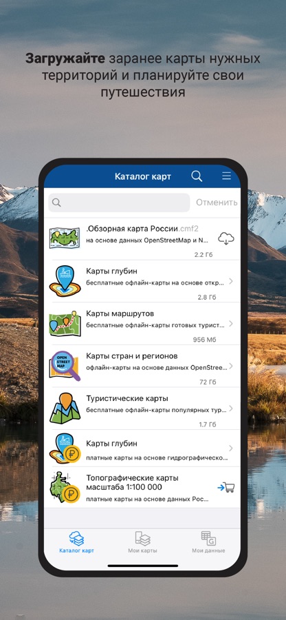 Бесплатное приложение с картами для путешествий, прогулок, рыбалки и охоты.