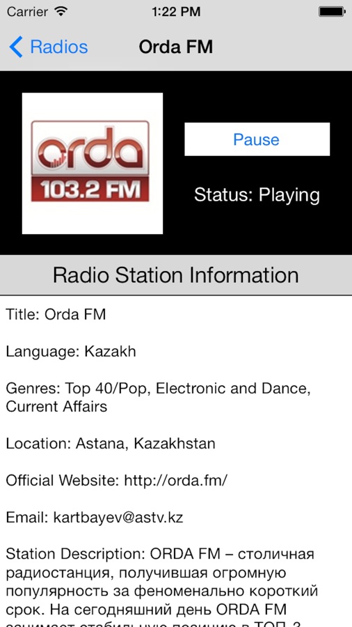 Информация о Kazakhstan Radio Live Player (Astana / Kazakh / Russian / Қазақстан Qazaqstan / Казахстан / радио)
