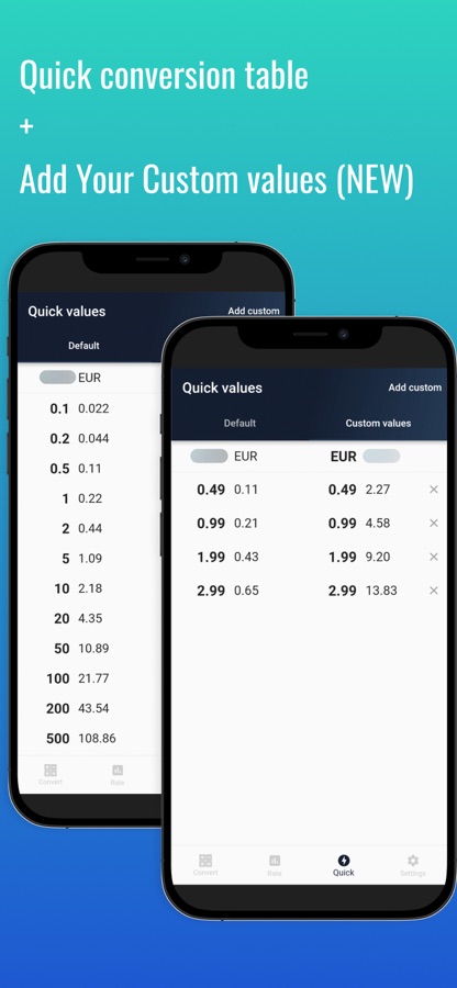 ‣ установите свой курс настраиваемый курс валюты — установите свой собственный курс для более точных курсов валют