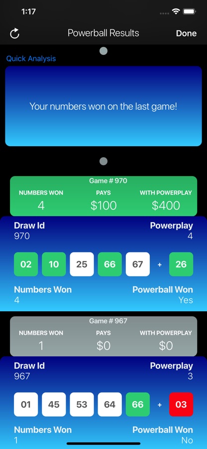 The app gives you real-time metrics to check which numbers, or combination are appearing the most or the least! Hot & Cold. Filter by the most recent 5,10,20,50,100 games, as well as other game ranges to compare results.