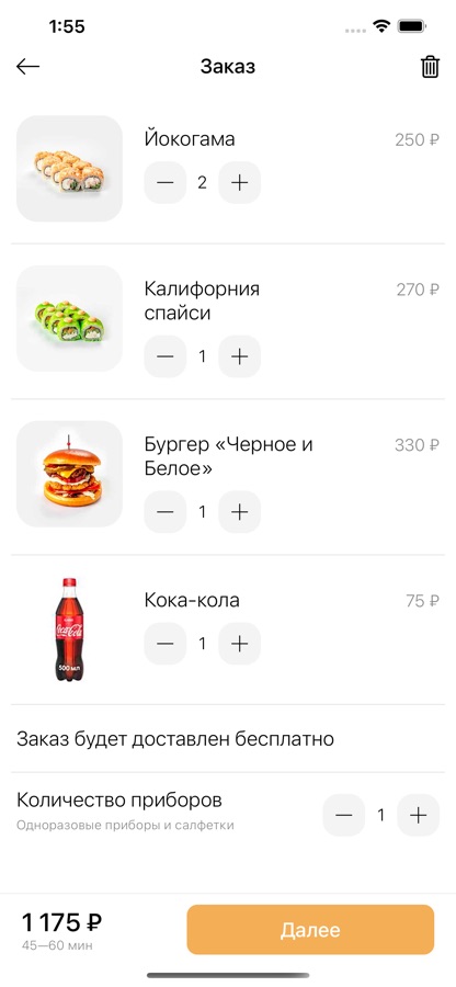 Пицца, роллы, бургеры и шашлыки в одном приложении. Заказывайте и наслаждайтесь.