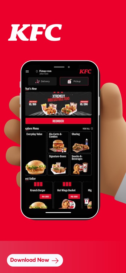 Customise your meals, order on the go and get the delicious Kentucky Fried Chicken delivered at your doorstep anywhere in Pakistan.
