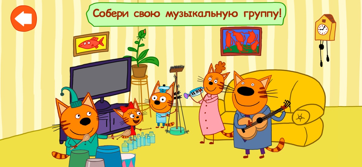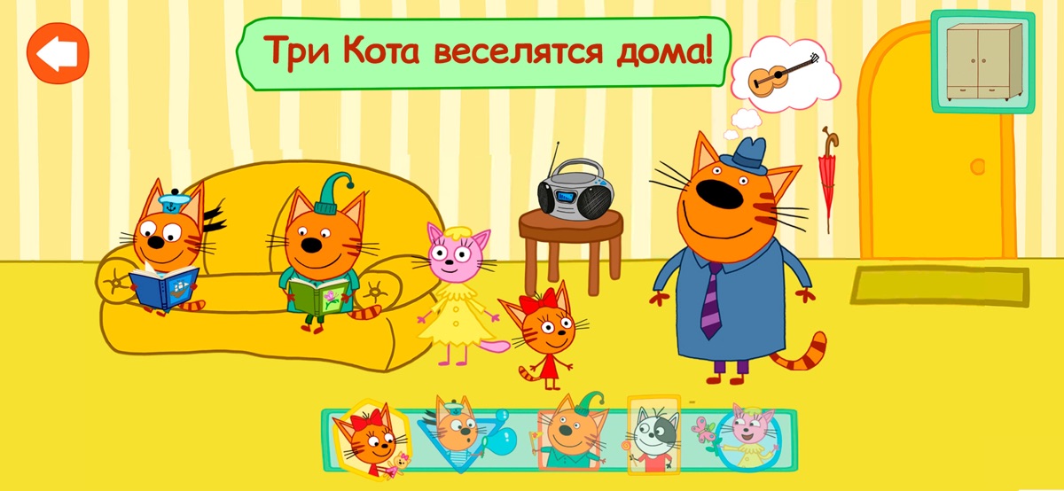 Игра подходит для самых маленьких. Красочный интерфейс и интуитивно понятный геймплей, позволяет насладиться любимыми персонажами по мотивам мультсериала «Три Кота» телеканала СТС.