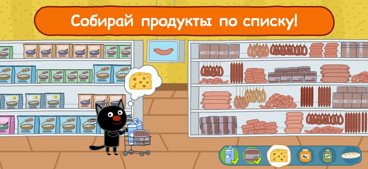Три Кота отправились в магазин за покупками! Купи вместе с ними продукты по списку!