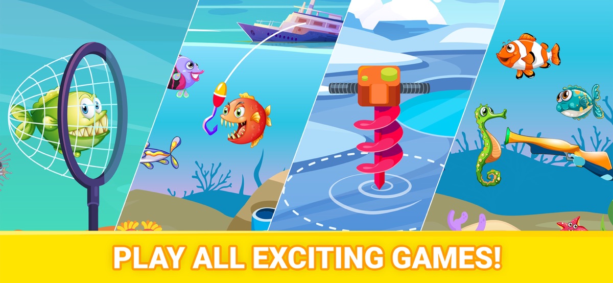 — Рыбалка с сачком. С помощью сачка малыш должен поймать рыбку, которая отображается в углу экрана, нажав на неею. Здесь юному рыбаку понадобится быстрая реакция.