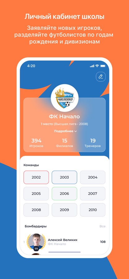 Наше приложение разработано исходя из потребностей футбольных школ, игроков и родителей. Мы намерены постоянно улучшать возможности приложения, чтобы сделать нашу лигу лучшей в России.