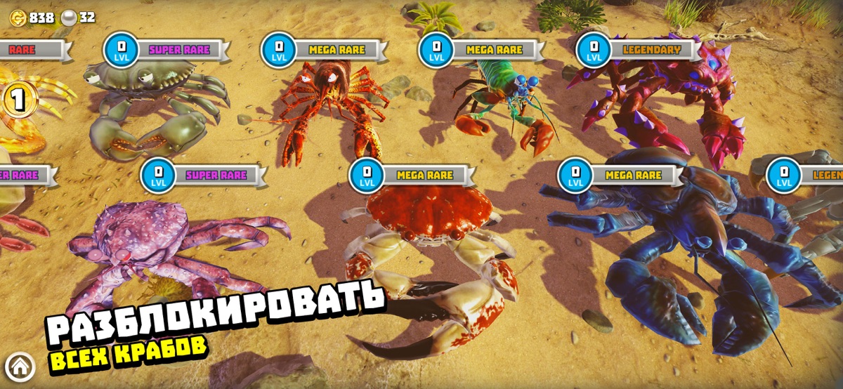 Собирайте, улучшайте и выращивайте разнообразных крабов. Получите продвинутые навыки и собирайте уникальные скины.