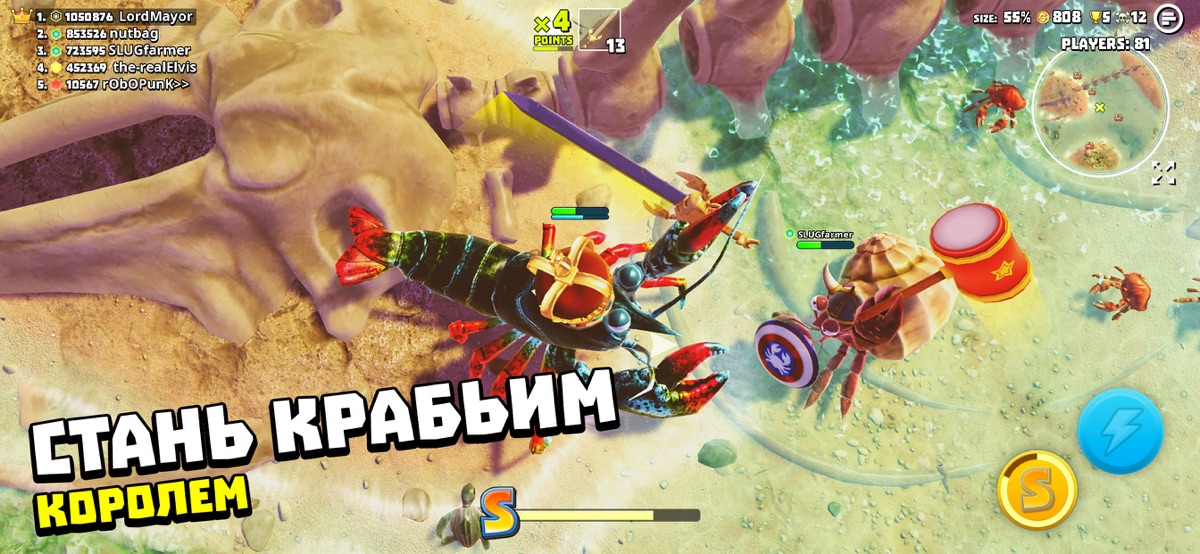 Обратите внимание: игра King of Crabs бесплатна для скачивания и игры, однако некоторые предметы можно приобрести за реальные деньги.