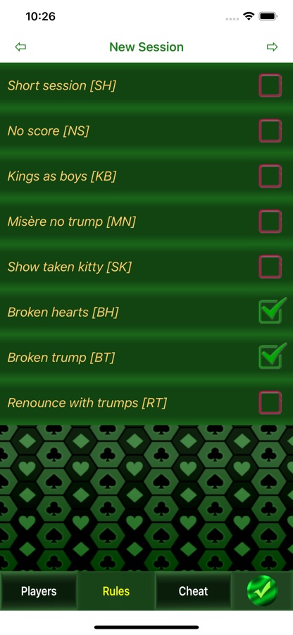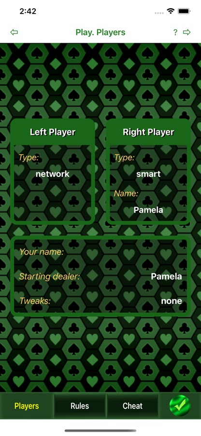 Ввиду существования разновидностей игры, приложение позволяет варьировать правила, приводя игру к варианту, к которому Вы привыкли. Поддерживаются также некоторые «подсказки».