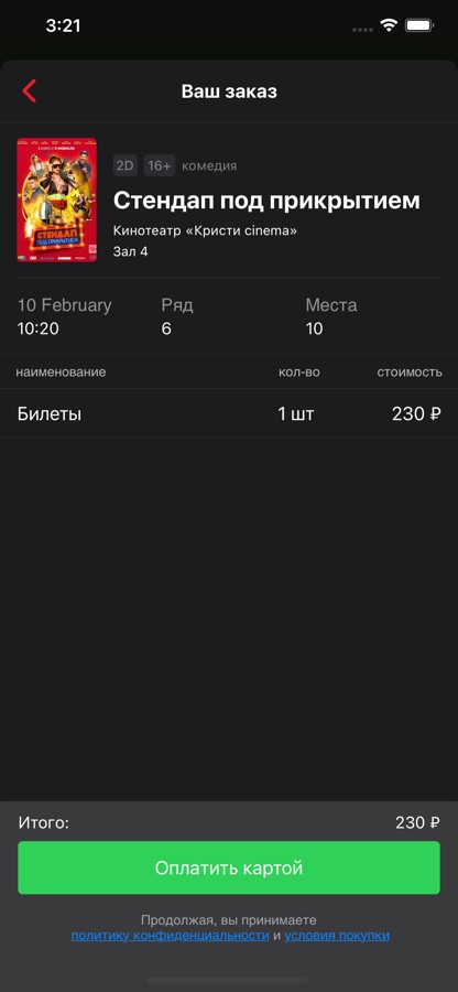 Мобильное приложение кинотеатра «Кристи Cinema» поможет вам подобрать удобный сеанс, узнать о новинках кинопроката и приобрести билеты в кино.