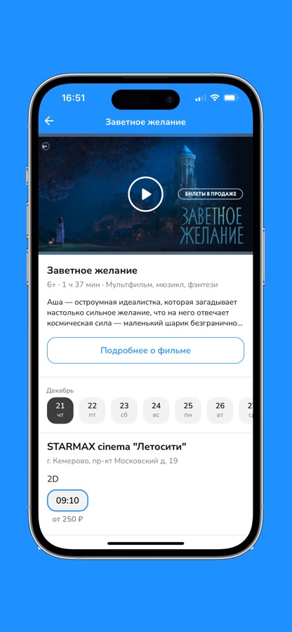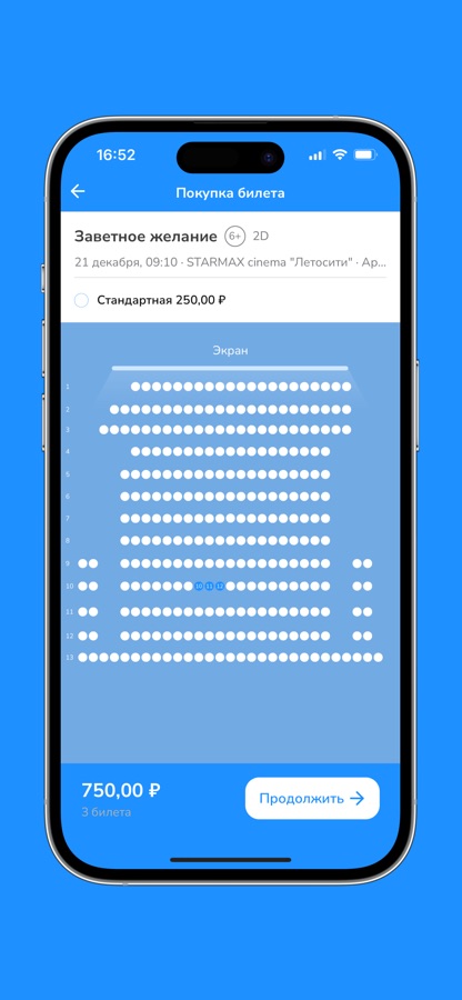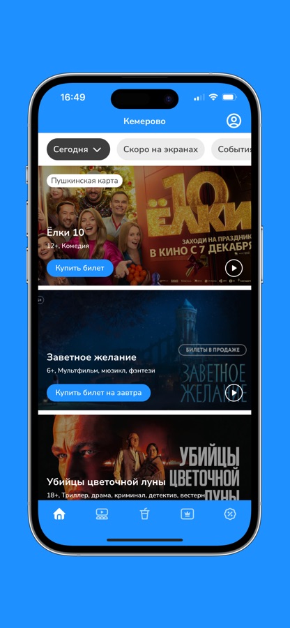 Ваши любимые места в зале без очереди — билеты не нужно печатать, просто покажите на входе QR-код и проходите в зал.