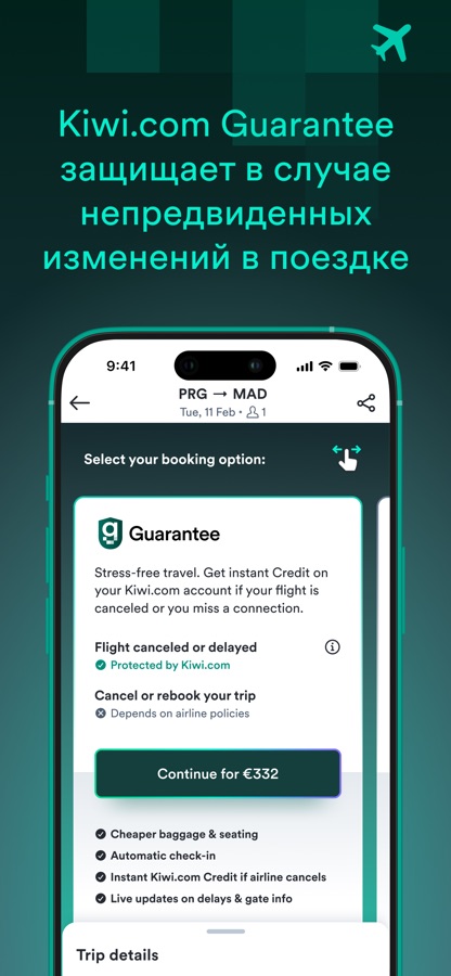 Скачайте наше приложение для сканирования авиарейсов прямо сейчас и получите недорогие билеты на следующую поездку. Если у вас возникнут вопросы или пожелания, обращайтесь к нам напрямую по адресу support@kiwi.com.