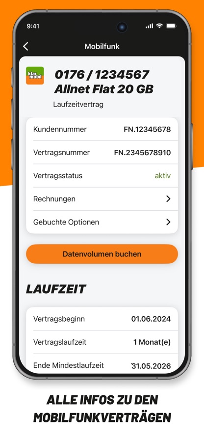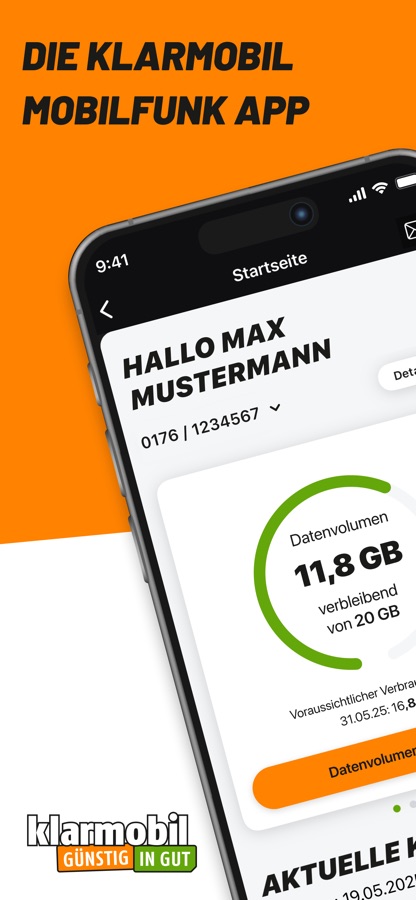 • Für die Nutzung der App einfach mit denselben Daten wie auf der Website (klarmobil.de) anmelden. Falls noch kein Online-Konto besteht, einfach direkt in der App registrieren.