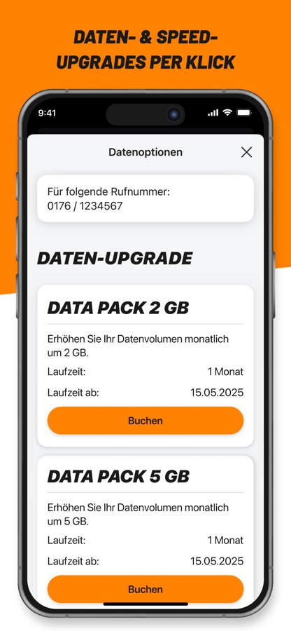 • Möglichkeit, weiteres Datenvolumen dazuzubuchen.